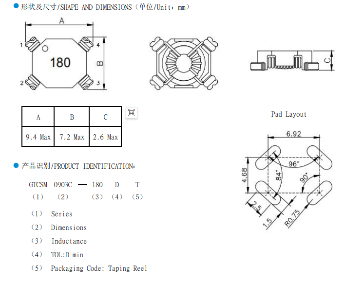 一:貼片磁環(huán)電感GTCSM 0906C 產(chǎn)品特征