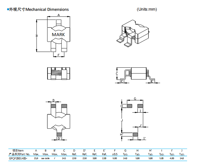 一、扁平線貼片電感GPQF200140產(chǎn)品特性