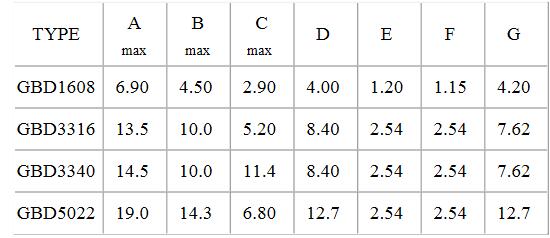 四、?貼片功率電感GBD封裝尺寸列表